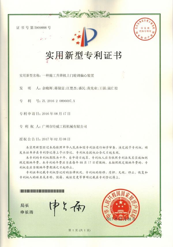 廣州市特威工程機械有限公司地處廣州市白云區神山鎮,廣清高速神山出口附近,是一家施工升降機的專業生產廠家。公司成立于2011年,占地100000多平方米,注冊資金1060萬元,現有員工300余人其中工程技術人員33人,高級技術人員52人。